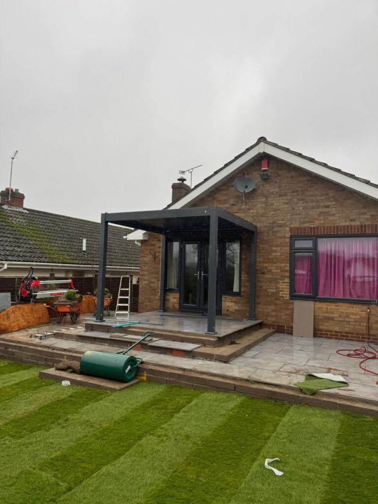 As the project came together, the new artificial lawn was rolled out and the pergola frame installed, framing the rear of the property beautifully. The result is a clean, modern outdoor living space — functional, low maintenance, and built to last.