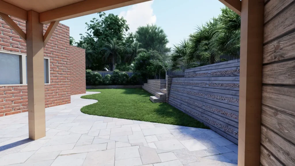- Retaining and level adjustments using timber sleepers for a cleaner transition