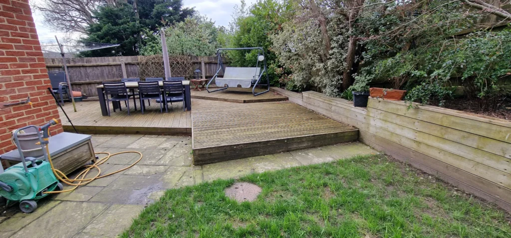 Our client approached CHS Landscapes looking to completely revitalise their tired and disjointed garden. The existing space featured multiple raised timber decks, heavy shading, uneven levels, and limited practical use. Over time, the decking had become slippery and weathered, and the layout no longer suited how the family wanted to use the garden.