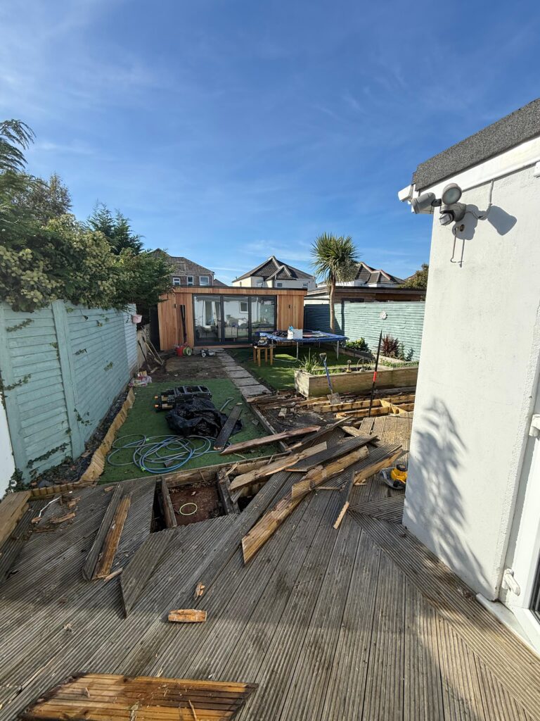 Old decking can often hide structural issues such as uneven ground or poor drainage, so it’s important to properly prepare the base before installing new surfaces.
