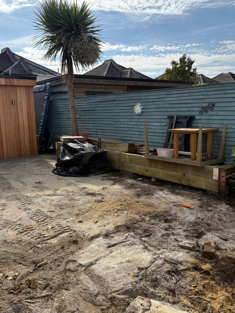 The first stage of the project involved removing the existing timber decking. Once dismantled, it revealed areas beneath that needed levelling and preparation before the new landscaping could begin.